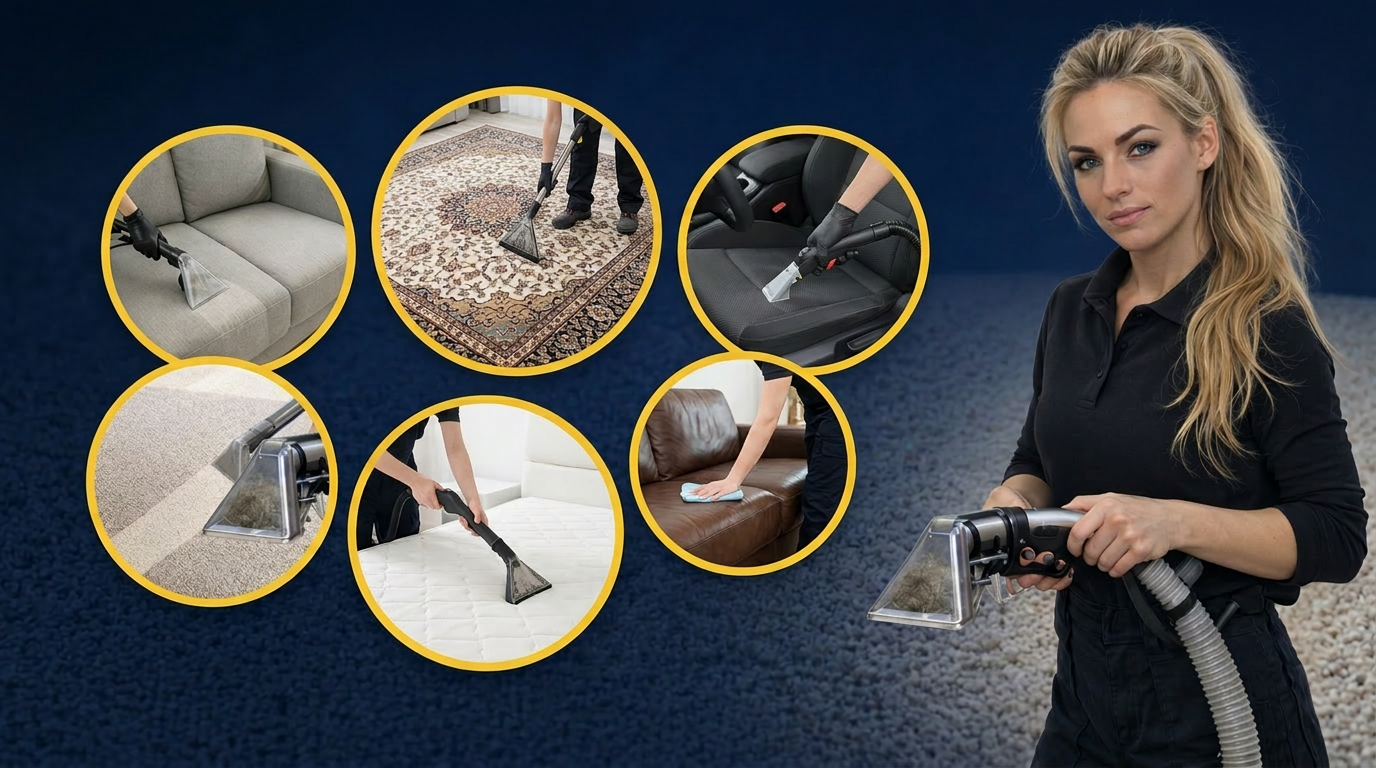 Yes — fabric and leather sofas, armchairs, mattresses, rugs, stair runners, and full car interior cleans are all part of the service.